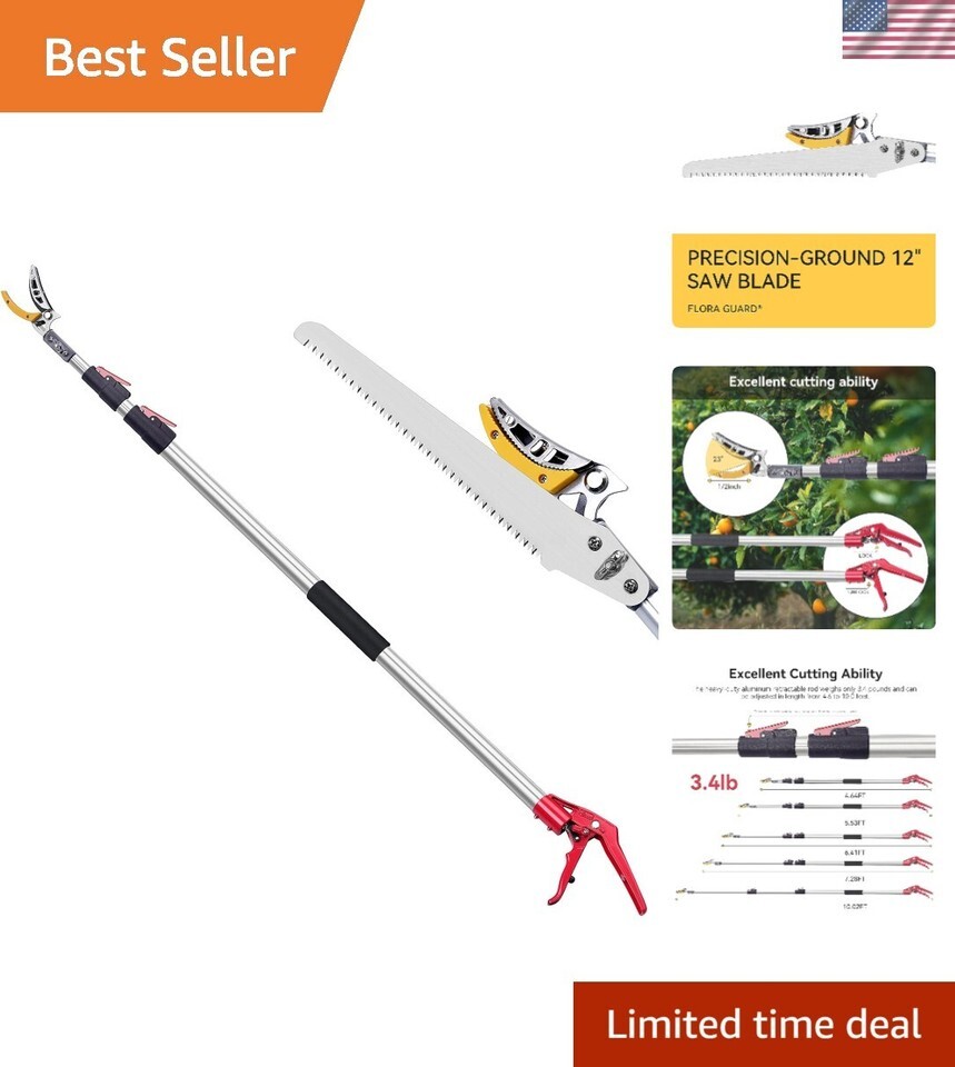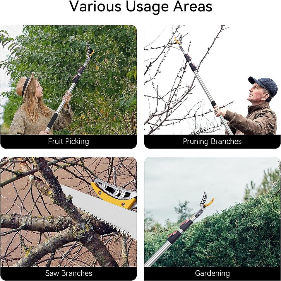 [Multi-functional Branch Trimmer] Equipped with both pruning and tree saw functions, this versatile tool has an adjustable length of up to 10 feet, making it perfect for effortlessly maintaining garden trees and orchard fruit trees.