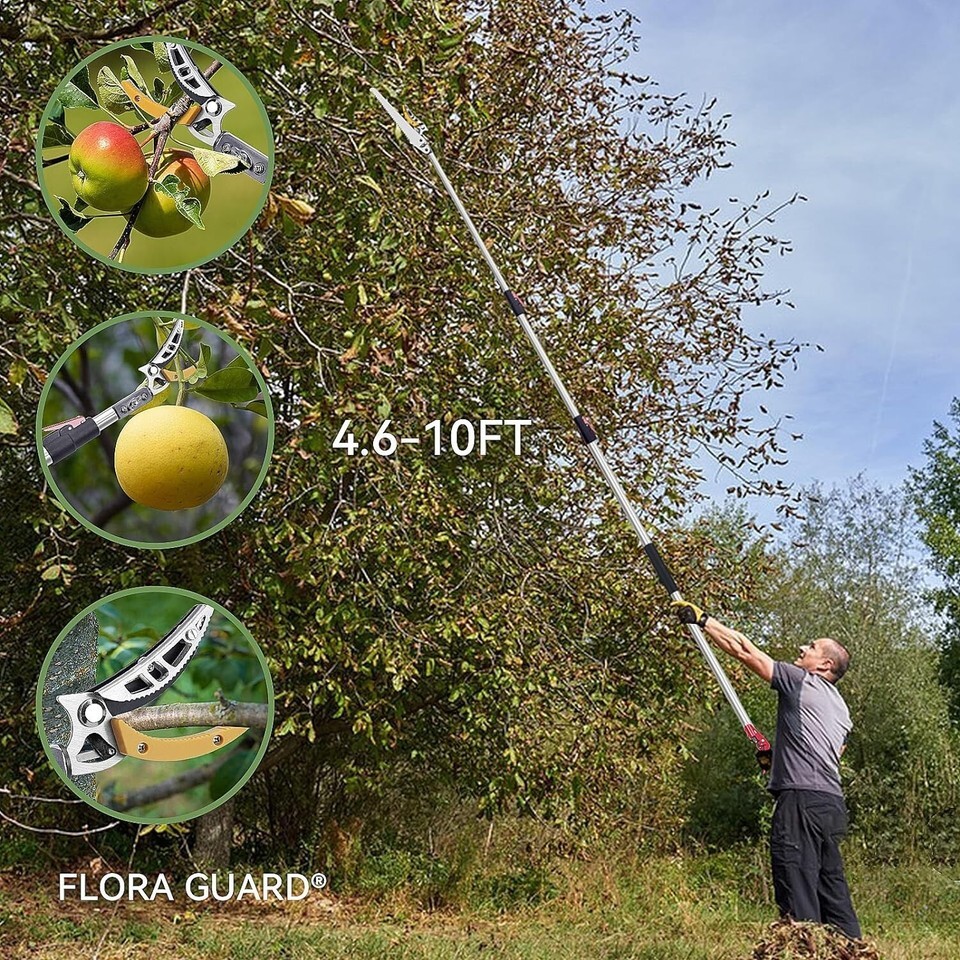 4.6-10ft Extendable Tree Pruner,Cut and Hold Pruning Trimmer - Long Reach Pol...