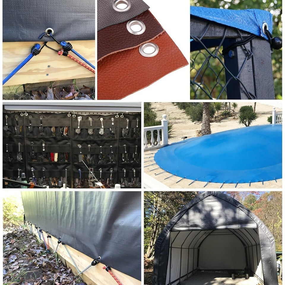?Superior quality? grommet kit equipped with durable high purity metal 3/8 inch (10mm) grommets, which are neat and firm. Strong penetration makes them easy to be buttoned up. They are made of stainless steel with anti-rust oil chrome plated surface for long life, not easy to rust.