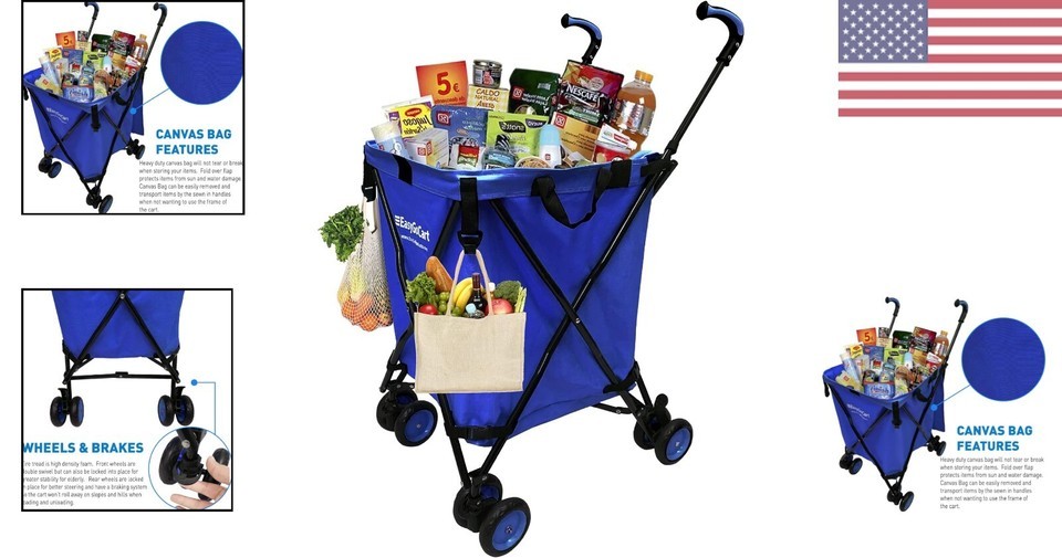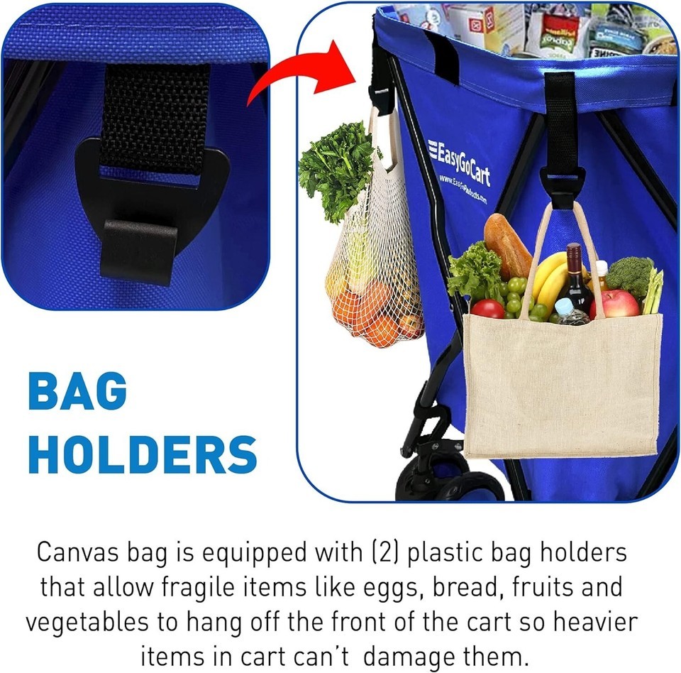Comes with a removable water-resistant canvas bag for carrying groceries or laundry.