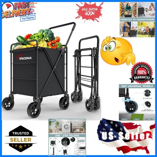 Compact Folding Swivel Caster Cart for Grocery and Laundry - 120lbs Capacity