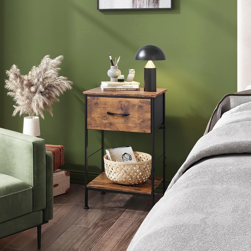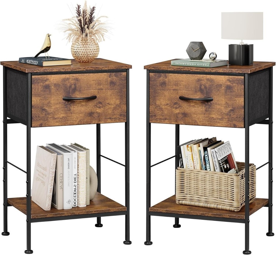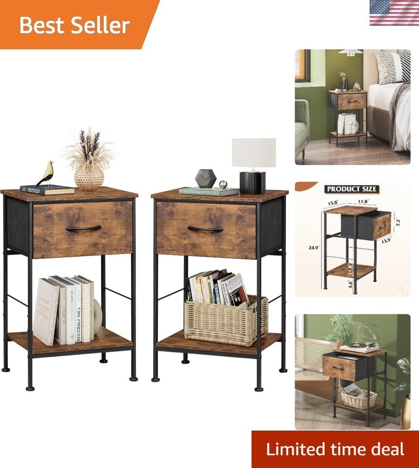 Nightstand Set of 2, End Table with Fabric Storage Drawer and Open Wood Shelf...