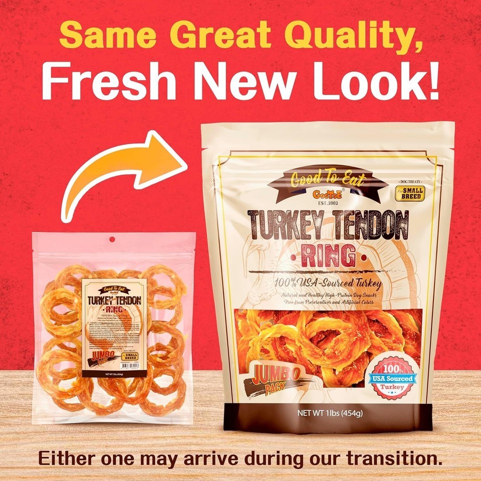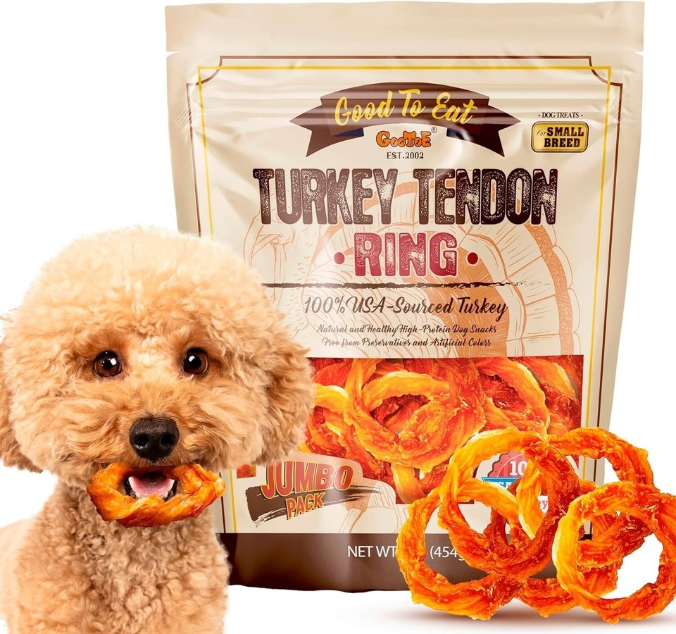 Turkey Tendon Dog Treats ? 100% -Sourced, Natural Snack, Premium Training Chews, Hypoallergenic, Reseal Value Bags, Size for Small Dogs, Ring S Jumbo Pack, 1 lb Pack of 1