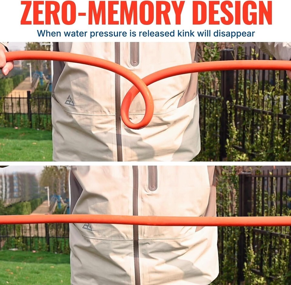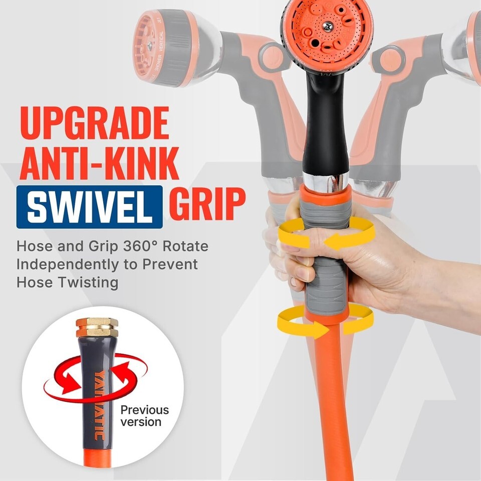 Anti-Kink Technology: Embrace effortless usability with advanced material that allows the hose to uncoil and lie flat upon first use, combined with a 360-degree swivel fitting to combat kinking.