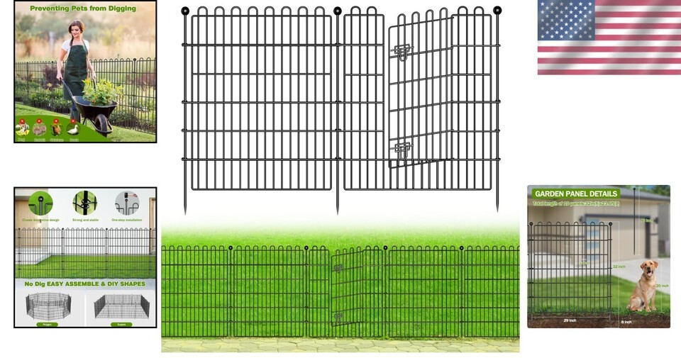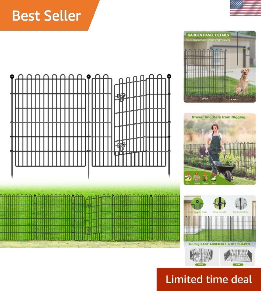 10-Piece No Dig Garden Fence with Gate - 32in High, 23.6ft Durable Metal Barrier