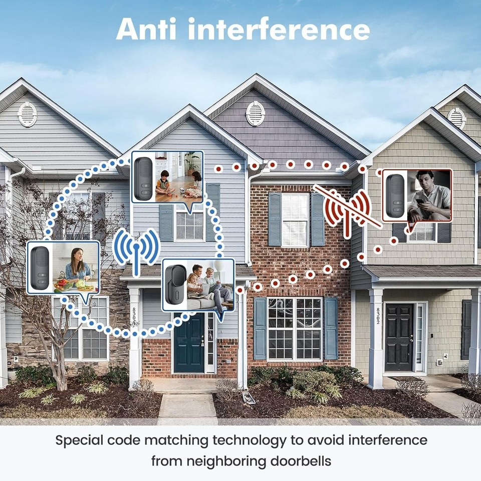 [ Anti-Interference No ly Fees] This doorbell doubles as a wireless intercom that won?t be affected by WiFi disruptions and has no ly fees! It also won?t interfere with your other smart devices or the other wireless doorbell. Use the mute mode on the indoor unit when you want silence.