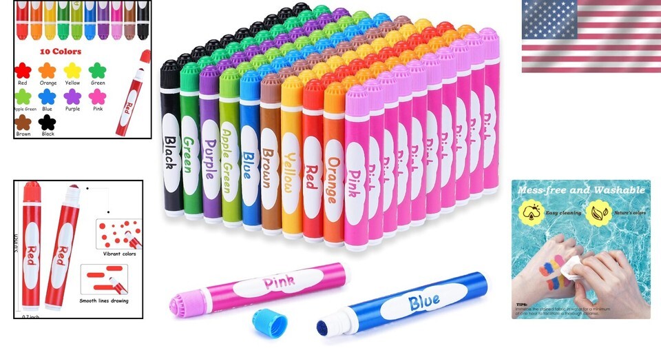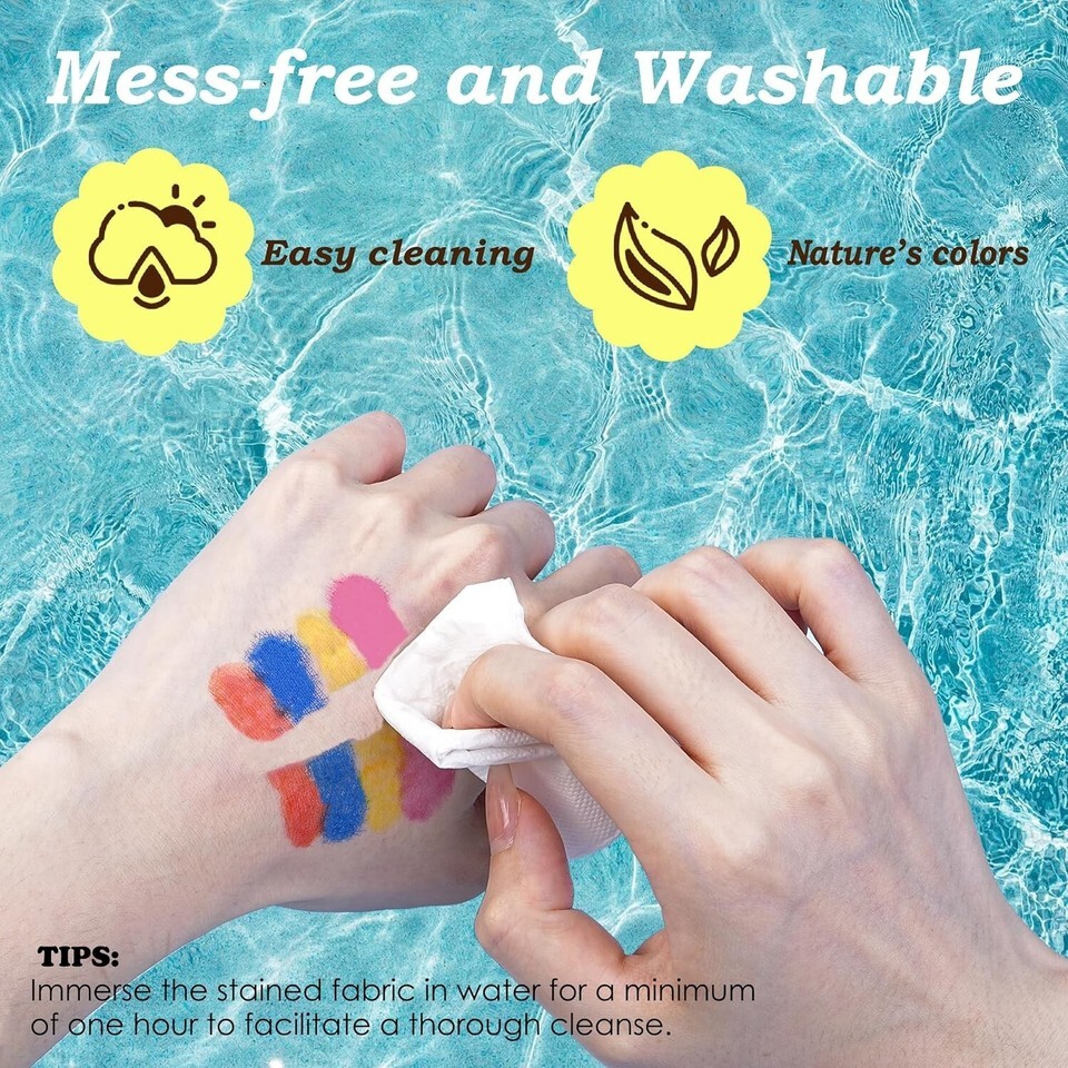 Mess-free and washable, easily cleans off hands, clothes, and surfaces with a water-based formula.