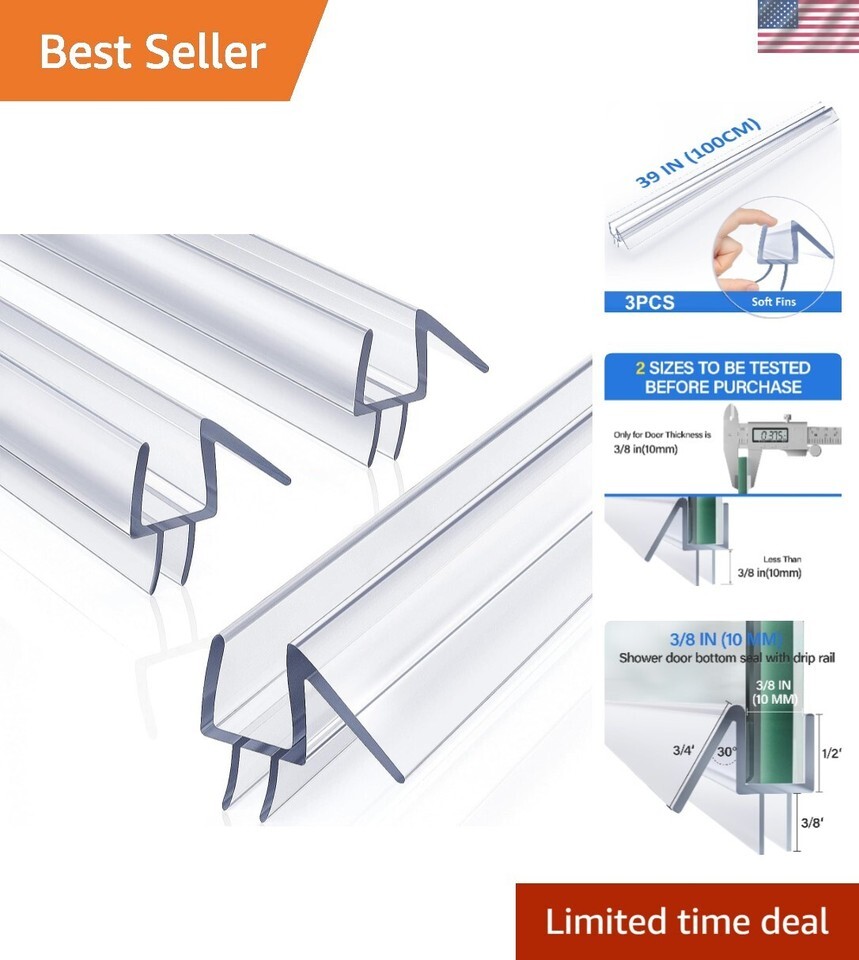 3-Pack 3/8" x 39" Shower Door Bottom Seal - Shower Door Sweep - Frameless Glass Seal Strip - Stop Shower Leaks and Create a Water Barrier, 10MM