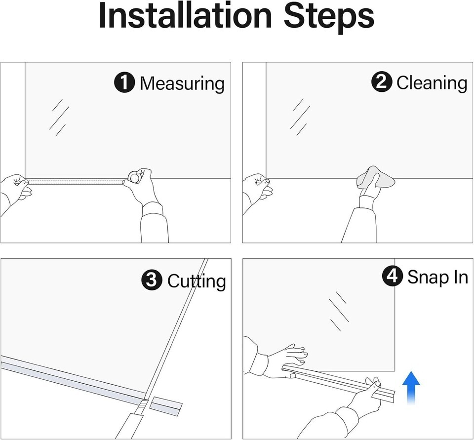 Snap-on Shower Door Seal! The quick and effortless solution for sealing your shower door. With a hassle-free installation process that takes just 5 minutes, you won't need any tape or adhesive. All you have to do is fit the shower door seal under the door and snap it in place for a tight hold