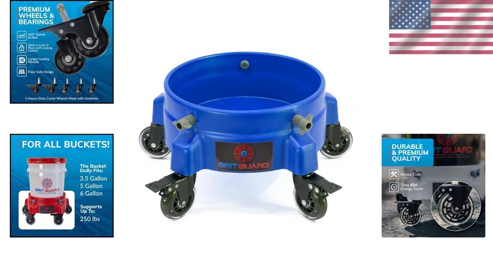 Bucket Dolly with Wheels - 5-Wheel Rolling Cart for Effortless Detailing