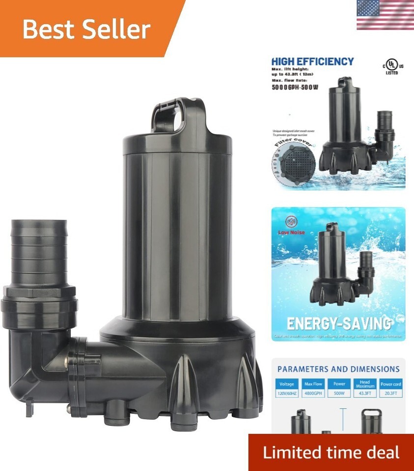 Compact Submersible Pump 5000GPH with Overheat Protection for Garden Fountains