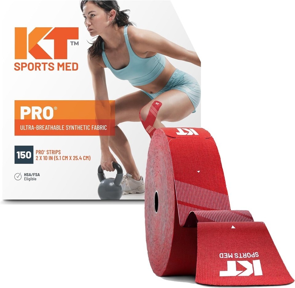 Need PRO level support that will endure your toughest workout? pro is just what the trainer ordered. It relieves pain and provides support exactly where you need it. Each jumbo pack comes with 150 precut strips of 100% synthetic tape. PRO is designed to stay in place through multiple demanding workouts for up to seven days. Stronger adhesive sticks with you in the harshest conditions including daily showers, humidity, cold?even in the pool. Precut strips have rounded corners which help to prevent the corners from catching on clothing and pulling up. pro is versatile and can be further cut to fit your back, knees or wherever you need it. Apply correctly with the KT App! For best results, apply one hour before activity and after you've cleaned your skin of dirt and oils. Don't overstretch the tape and make sure the ends are on skin.