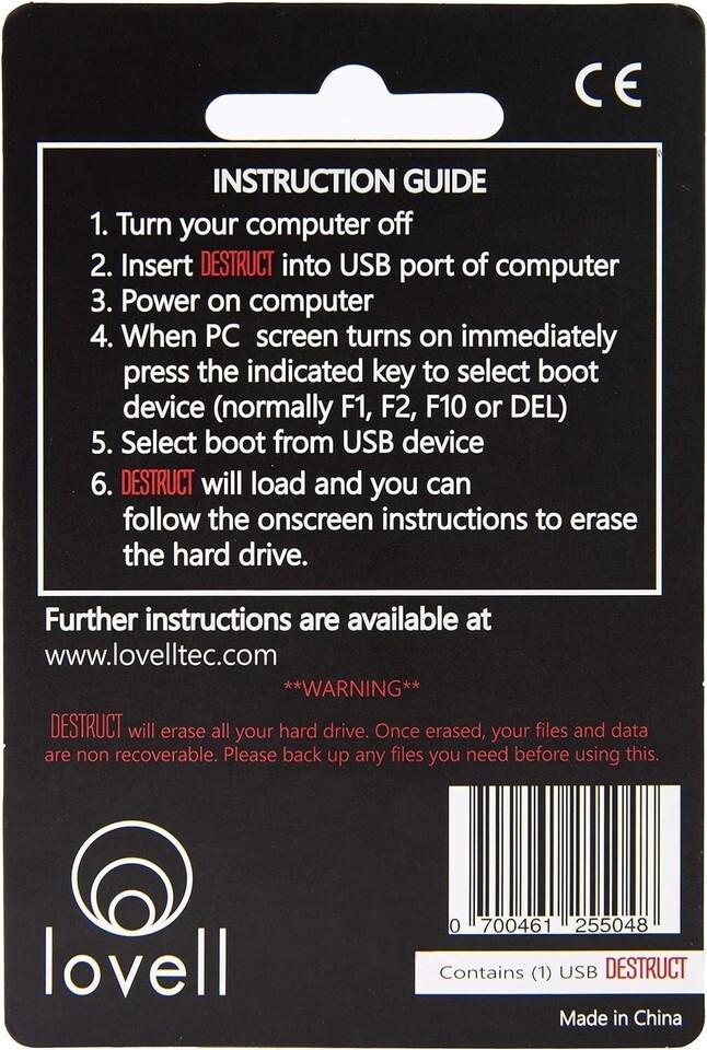 USB Gadget - Military Grade Hard Drive Wiper - Permanently Erase All Data on PC and Laptops Before Selling