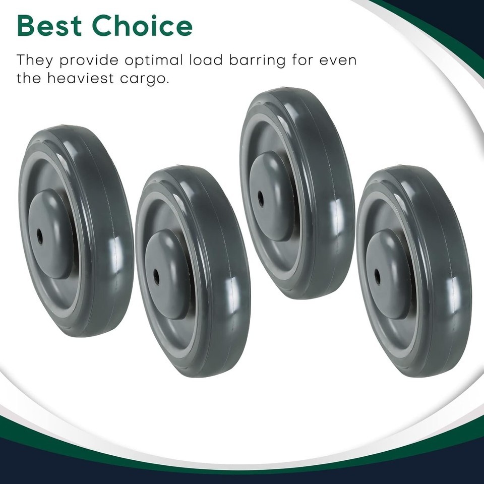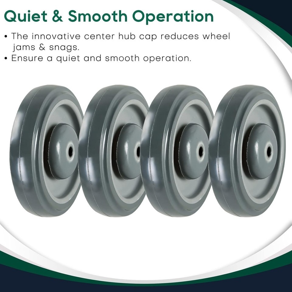 Shopping Cart Wheel Kit | 5" Diameter Polyurethane Stepped and Full Tread Face w/Double Ball Bearing Shopping Cart Wheel 1000 lbs Total Capacity, Pack of 4 Gray