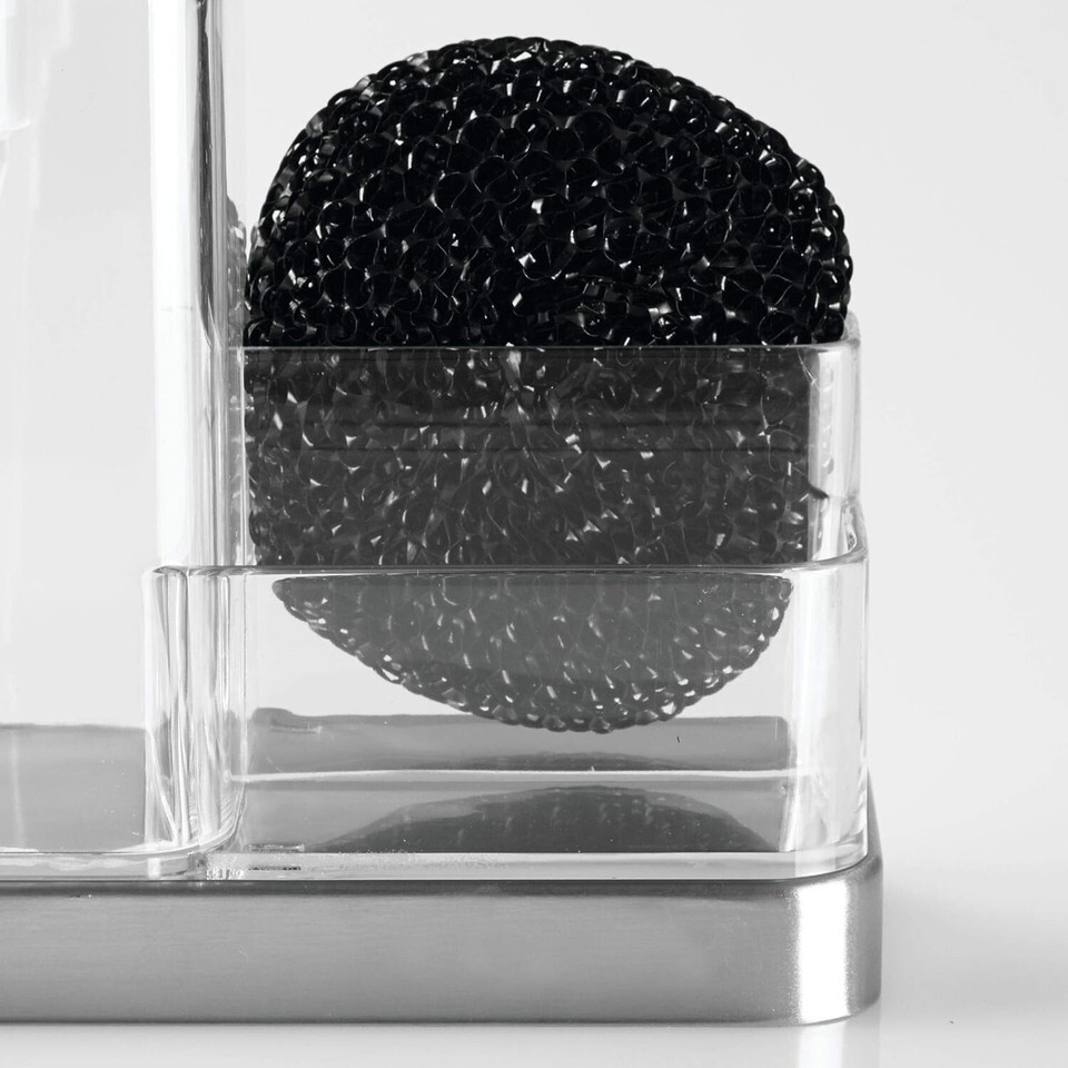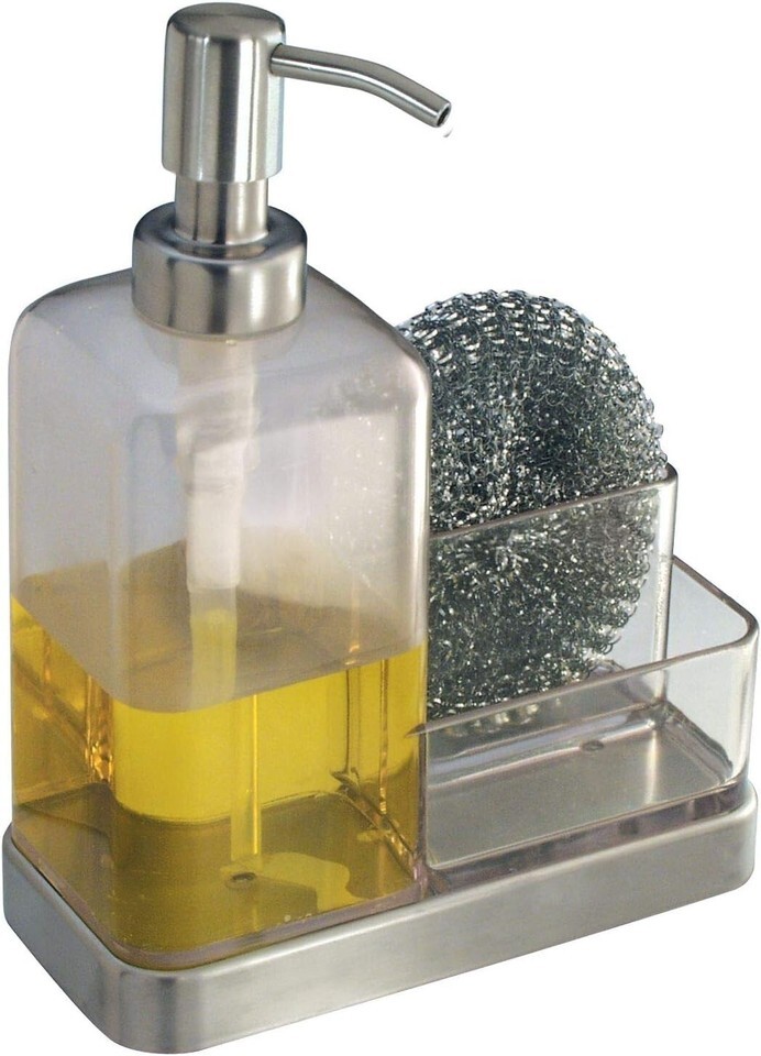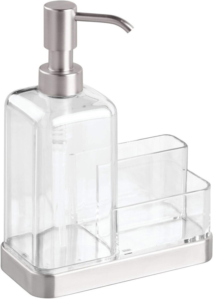 iDesign Forma Plastic Soap Pump with Caddy, Dispenser with Storage Compartment for Bathroom, Kitchen Countertops, Sinks, Set of 1, Stainless
