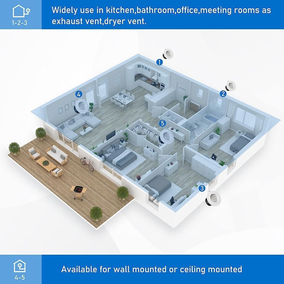 Wall or ceiling mounted for bathroom, office, room exhaust and ventilation