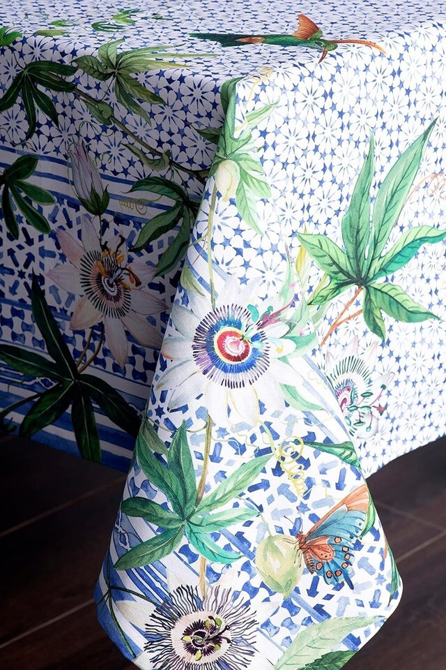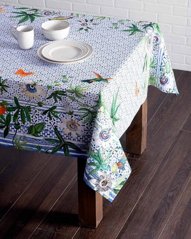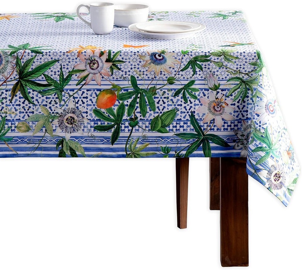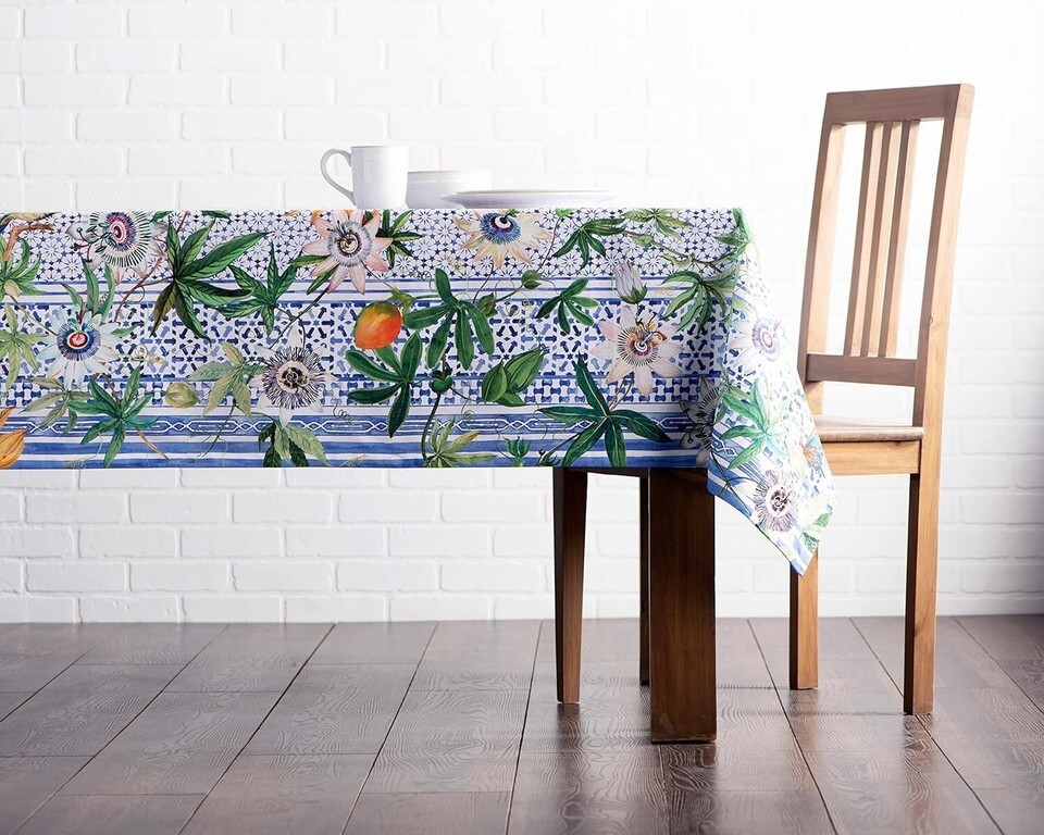 100% Cotton 70"x108" Decorative Rectangle s Washable Table Cover, Home, Wedding, Restaurant, Buffet Camping, Passiflora - Spring/Summer