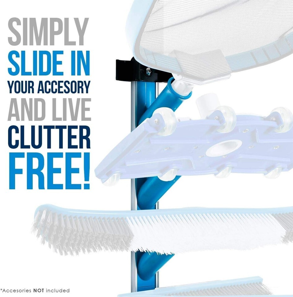 Pool Cleaning Accessory Organizer and Holder Rack - Store Poles, Brushes, Nets, Vacuums - Caddy Hanger for Swimming Pool Spa Attachment Accessories