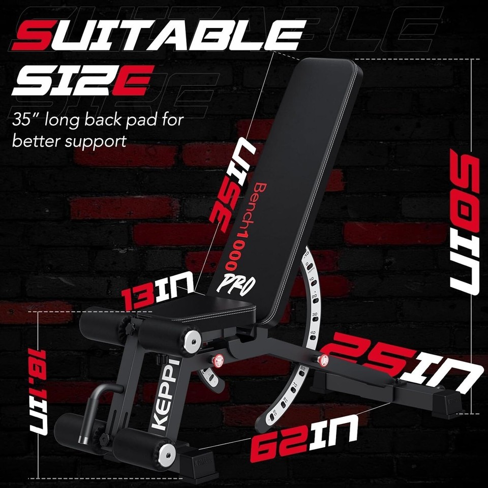 1200LB Weight Bench, Heavy Duty Bench1000 PRO Adjustable Workout Bench Press ...
