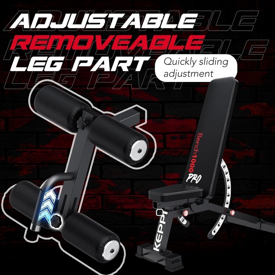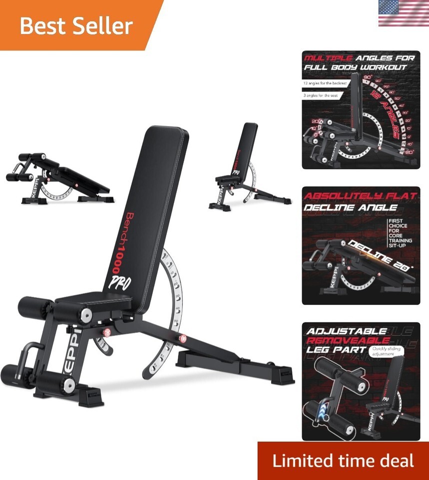 1200LB Weight Bench, Heavy Duty Bench1000 PRO Adjustable Workout Bench Press Set for Home Gym Strength Training, Removable Foot Catch for Incline Flat Decline Sit Up Bench for Full Body Fitness