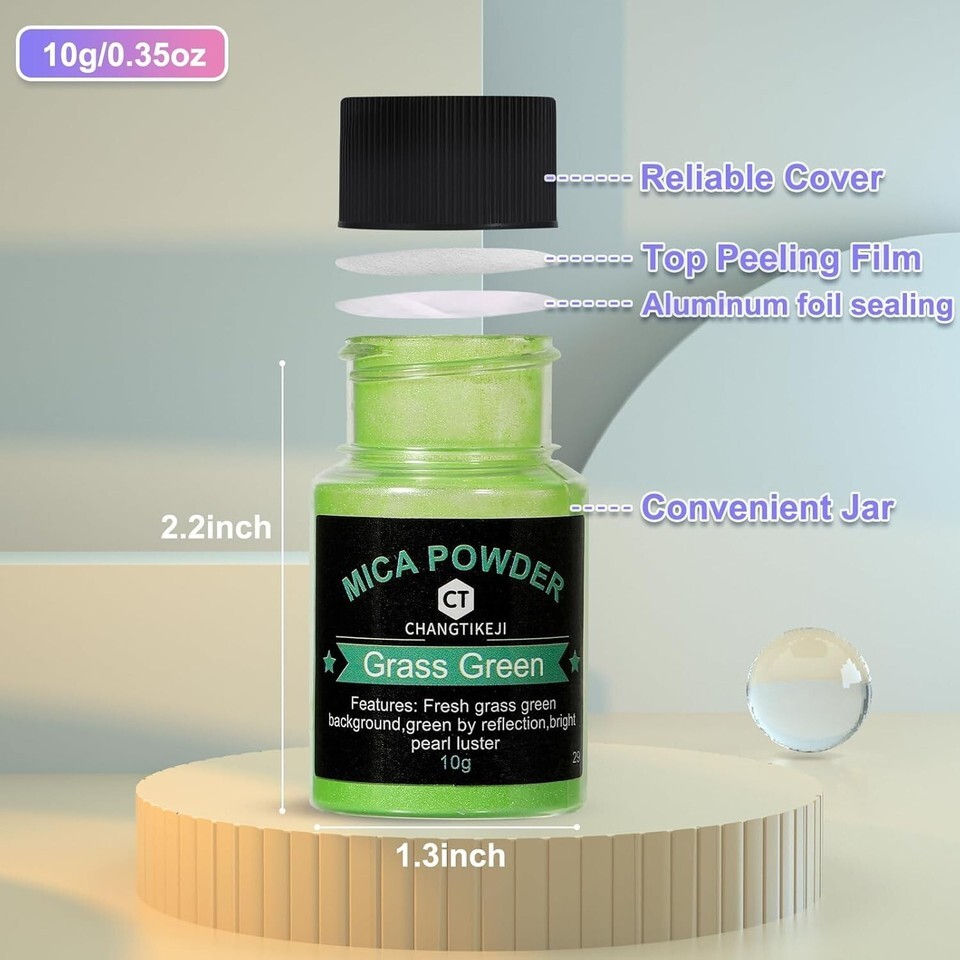 ?Wide Application?: This mica powder of Cosmetic grade is a great way to create something unique and pleasing to the eye.Perfect for eye shadow,lip gloss,resin arts,acrylic paint,tumbler,coaster,nail polish,soap making,bath bomb,slime pigment,candle making and so much more.