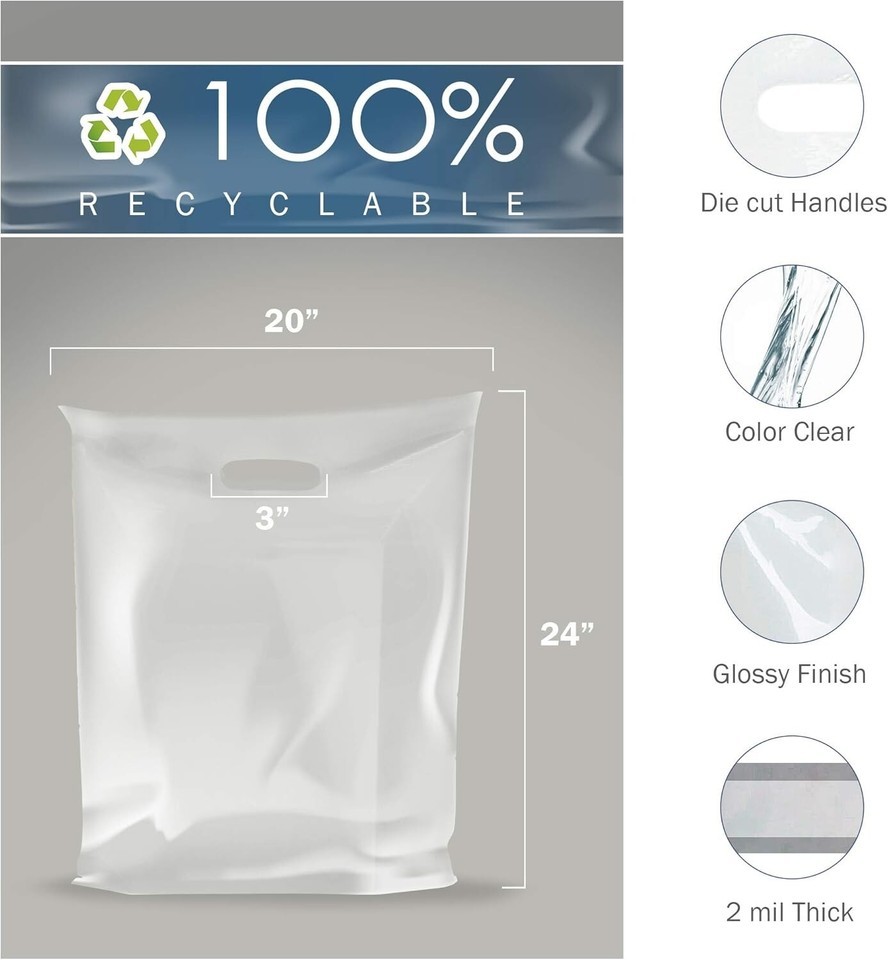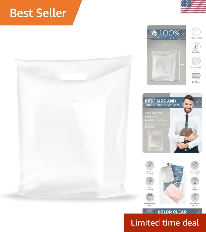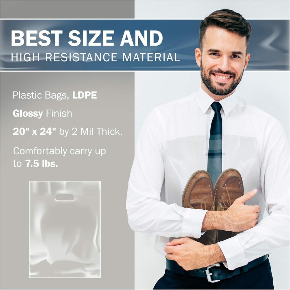 Extra Large Clear Merchandise Bags - Glossy Plastic Perfect for Retail - 100 Pack 20" x 24" x 2 mil Thick - Die Cut Handles - Ideal for Shopping, Large Packages, Toys - Color Clear - Recyclable
