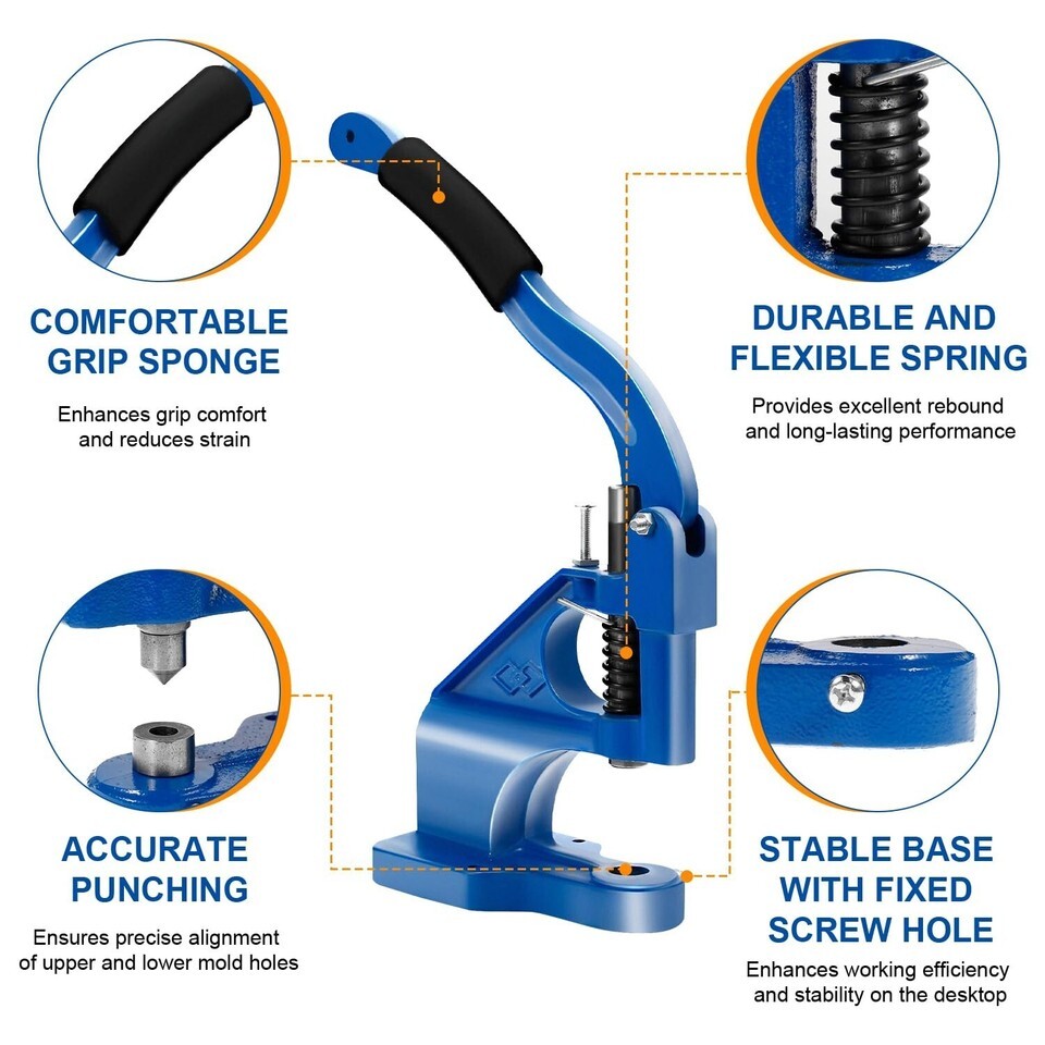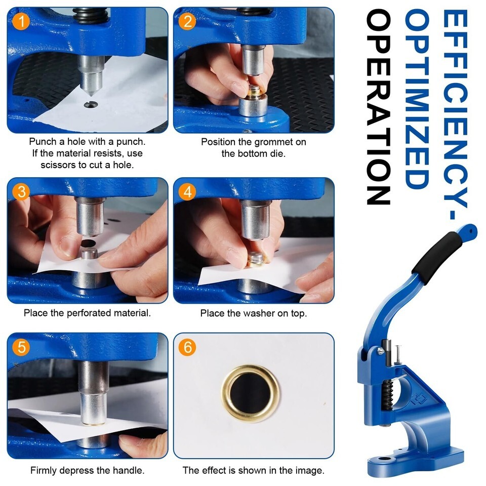 ?Ergonomically Accurate Design Energy Saving?Our hand press grommet hole punch machine adopts an ergonomic design based on the principle of leverage, making it very convenient to punch holes and is very suitable for long-term use; in addition, this design can also ensure the accuracy of eye pressure. No matter how long you use it, it can always maintain accuracy.
