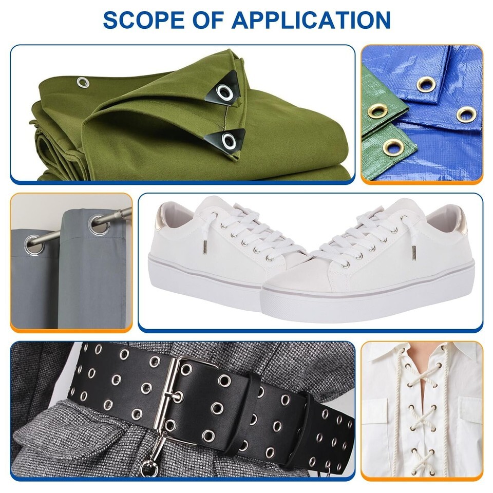 ?Wide Application? grommet press hole punch tool kit is an essential equipment for clothing manufacturers, crafts, sign shops and manufacturers. Suitable for banners, signs, awnings, posters, curtains, digital printing, scrapbooks, corsets, belts, bags, shoes, etc.