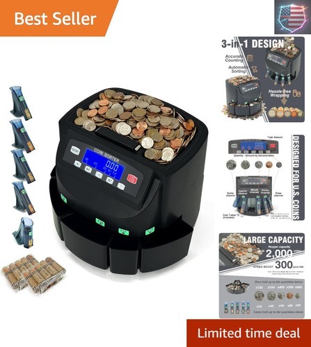 Professional USD Coin Counter, Sorter and Wrapper/Roller, 300 coins/min, with...