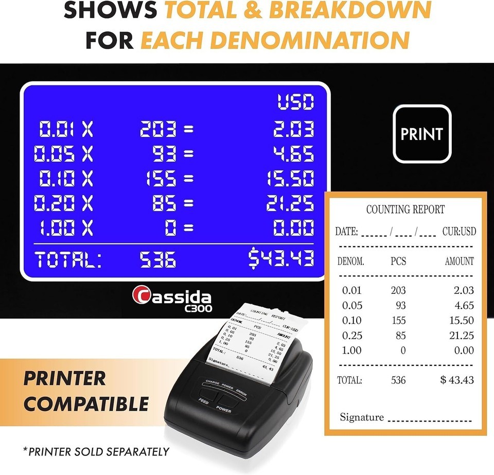 [PRINTING CAPABILITIES] Pair the with the Thermal Printer (sold separately) to print a detailed receipt of your daily count for easy bank deposits and personal record keeping. [satisfaction]Includes 1- satisfaction.