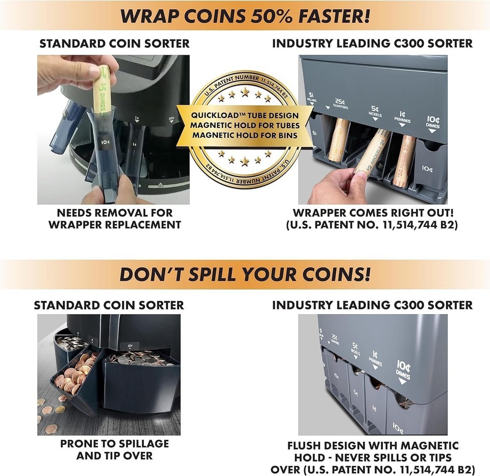 Innovative And Efficient Rolling System: Unlike Standard Coin Counters Where You Must Remove The Tube To Load Every Wrapper, Comes Armed With The Quick Load Coin Tubes Allowing For An Easy Swap Of The Full Roll With The Next Coin Wrapper From The Bottom Of The Tube.