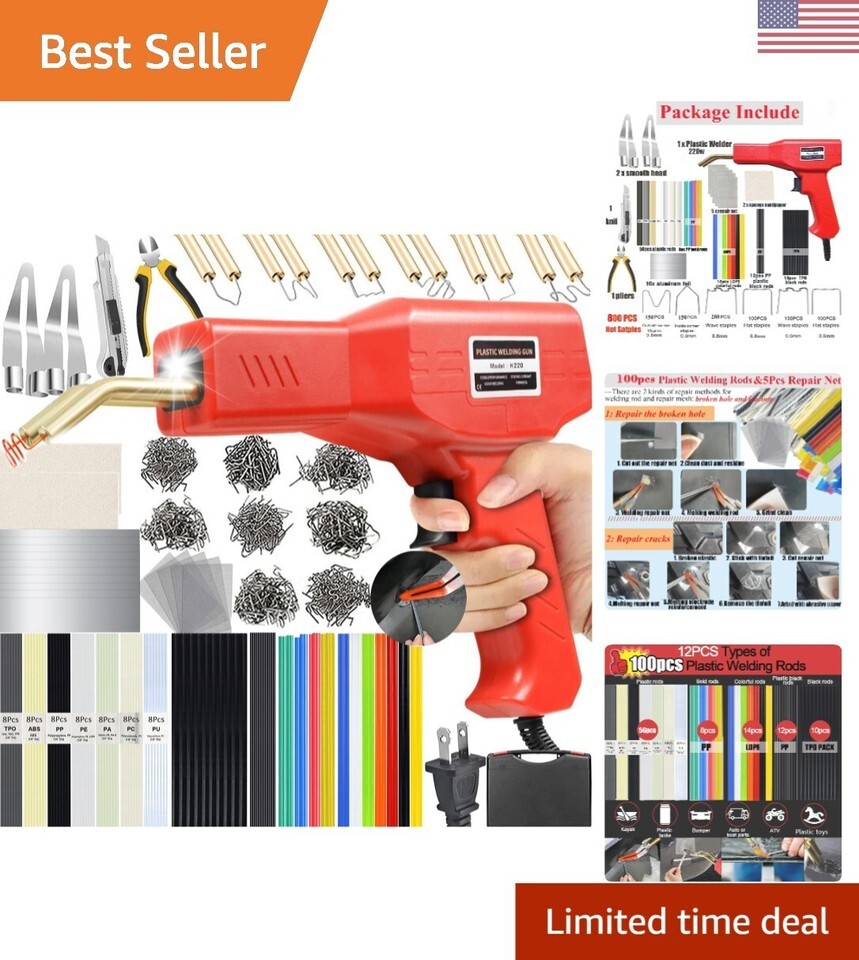 Don't settle for subpar plastic welding kits when you can have the best with our 220W Plastic Welding Kit. With quick heating power, versatile repair options, and a complete set of accessories, this kit is perfect for professional car bumper repairs and other plastic repair projects. The non-slip handle and LED headlamp make repairs easy and efficient, while the overheating protection device ensures your safety. Plus, our customer satisfaction guarantee means you can buy with confidence.