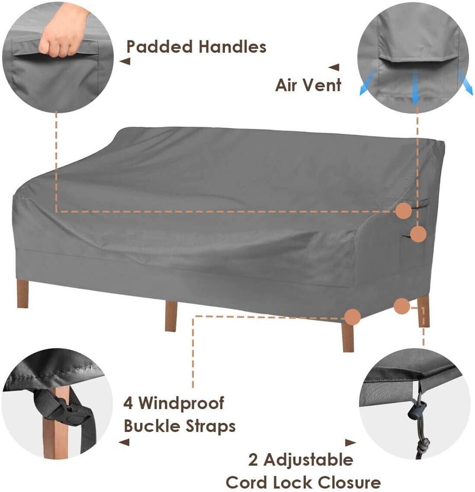 Maximum Protection:Heavy Duty Outdoor Sofa Covers are made of 600D polyester oxford fabric and PVC layer which is weather-resistant, waterproof dust-proof.Maximally protect your patio sofa from outdoor elements like sun, rain, winds, hailstorms, bird droppings etc.