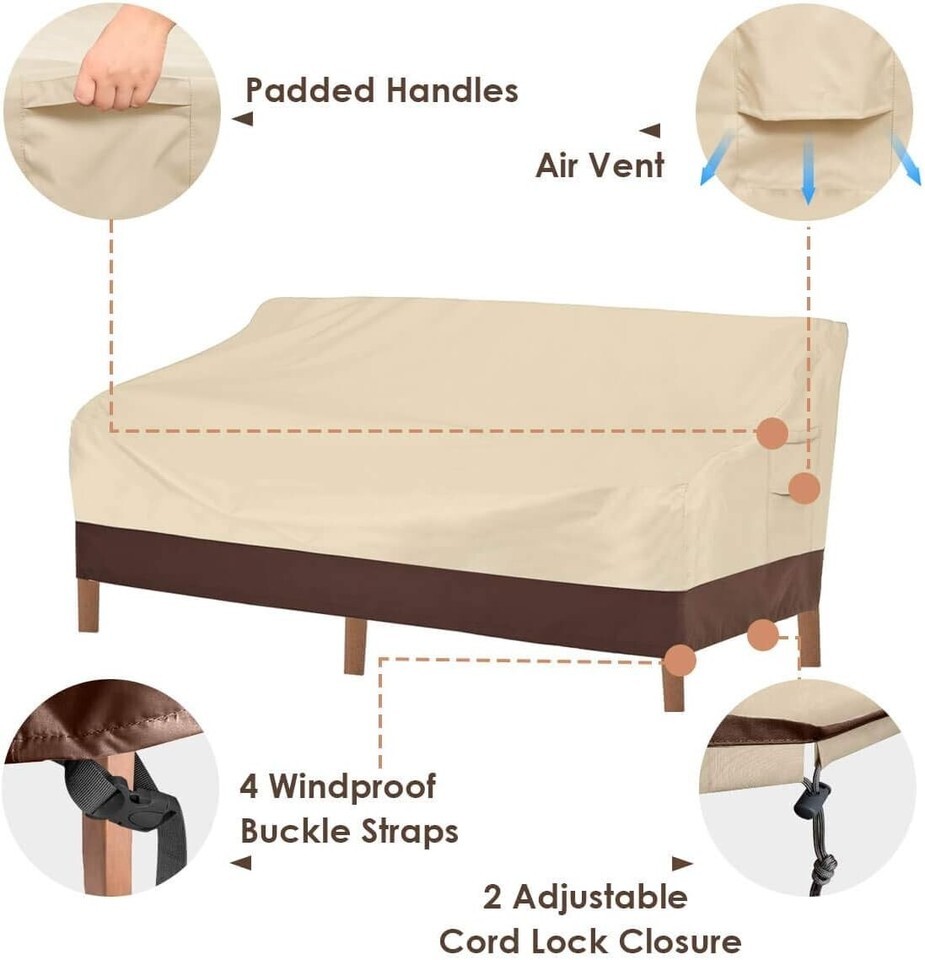 Maximum Protection:Heavy Duty Outdoor Sofa Covers are made of 600D polyester oxford fabric and PVC layer which is weather-resistant, waterproof dust-proof.Maximally protect your patio sofa from outdoor elements like sun, rain, winds, hailstorms, bird droppings etc.