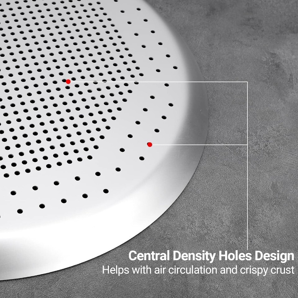 Upgrade your pizza baking experience with our Premium Perforated Pizza Pan. With its nonstick coating, breathable holes, and durable aluminum alloy construction, this pan ensures perfect results every time. Whether you're baking at home or in a restaurant, our pizza pan is versatile and reliable for all your cooking needs.