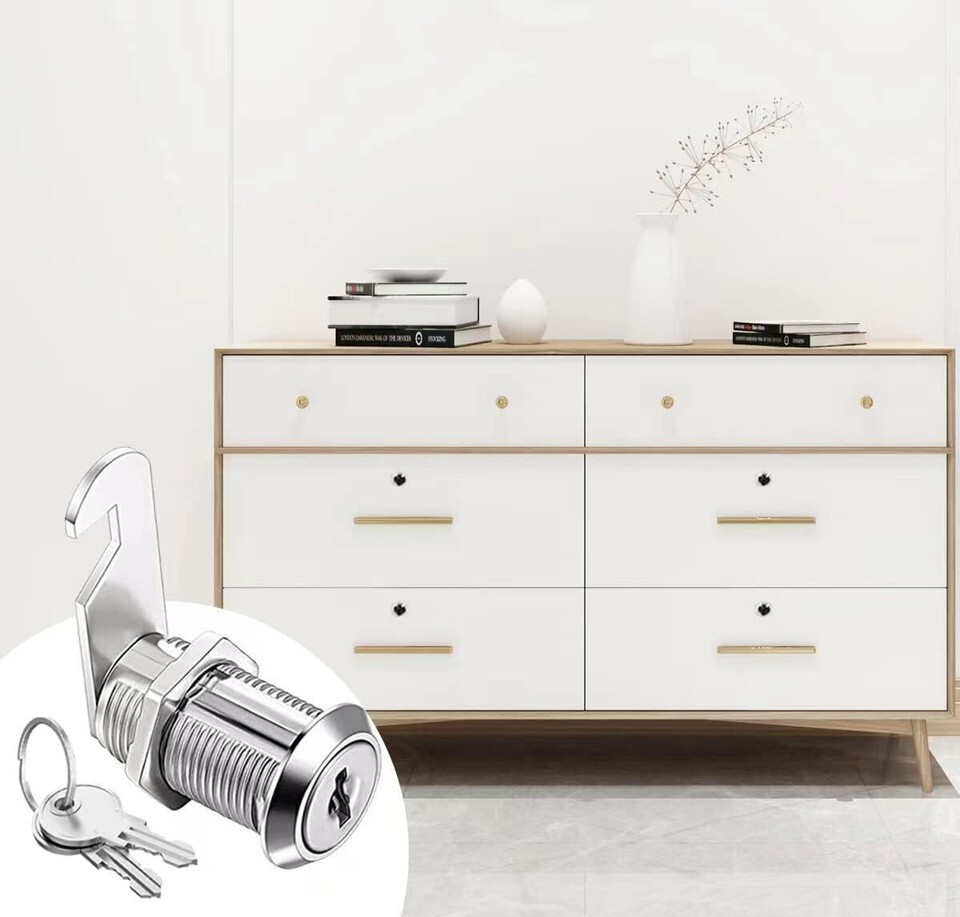 DURABLE MATERIAL: Constructed of diecast and steel components with a stainless finish, chrome-plated, 1-1/8? drawer and cabinet locks are waterproof and rustproof performance, resisting corrosion and wear for long-term use, which is perfect for keeping your small items safe and protecting your kids from dangerous items.