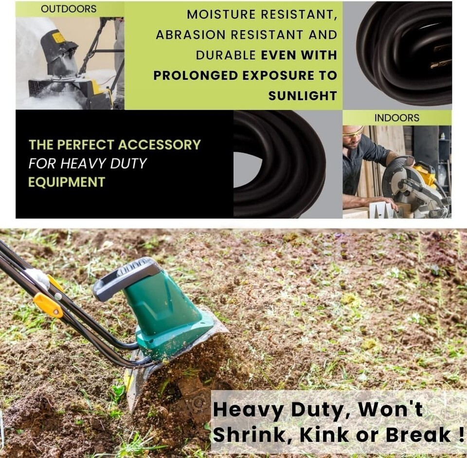 100 Foot Extension Cord: The powerful extension cord is 100 feet long. It is moisture resistant, abrasion resistant, and durable, even with prolonged exposure to sunlight!