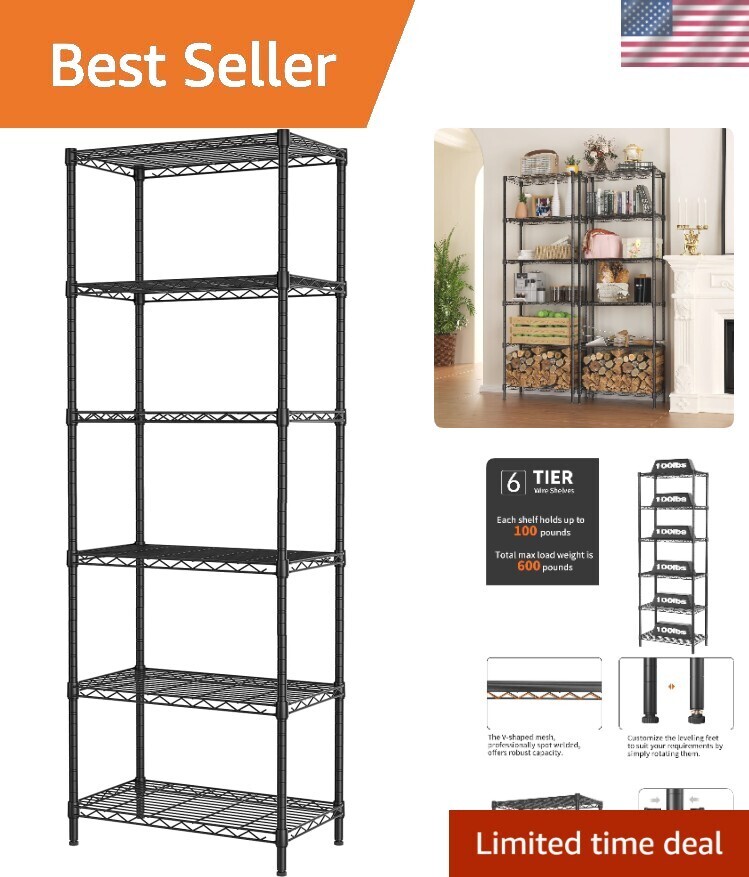 Versatile 6-Tier Wire Shelving Unit - Perfect for Garage, Kitchen, and Office