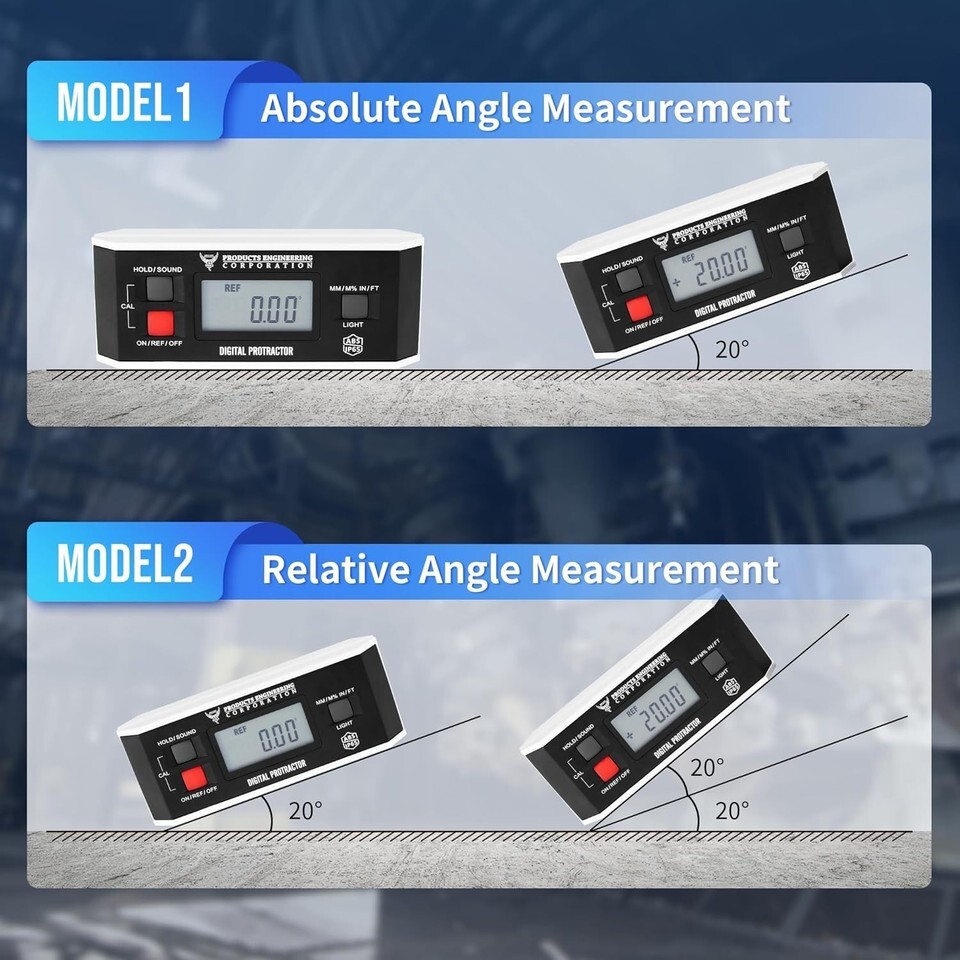 Absolute Relative Measurement: Equipped with modes for both absolute and relative measurements, allowing for quick and efficient angle determination between two surfaces.