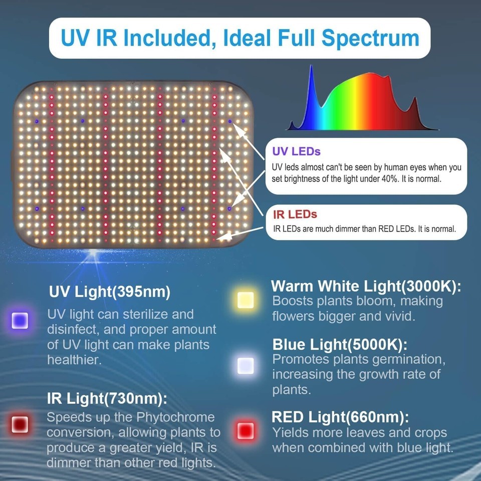Use Guide: Set brightness at different levels for seed starting, growing, and flowering.