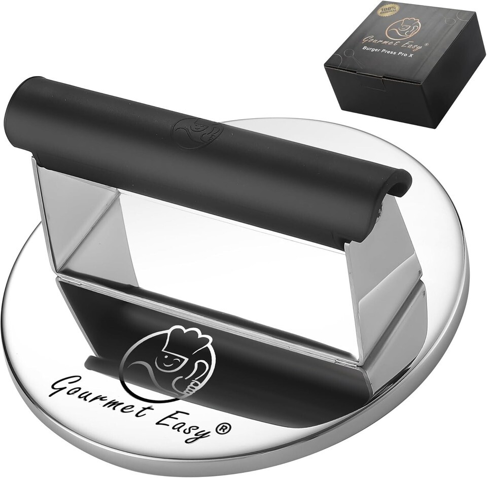 STAINLESS STEEL 304 BUILT TO LAST: Get ready to gift a tough and well-built hamburger smasher tool! It is made from durable stainless steel. NO MORE RUST! Comes with a silicone handle to help you apply pressure to the food easily safely. Create restaurant-quality burgers at home!