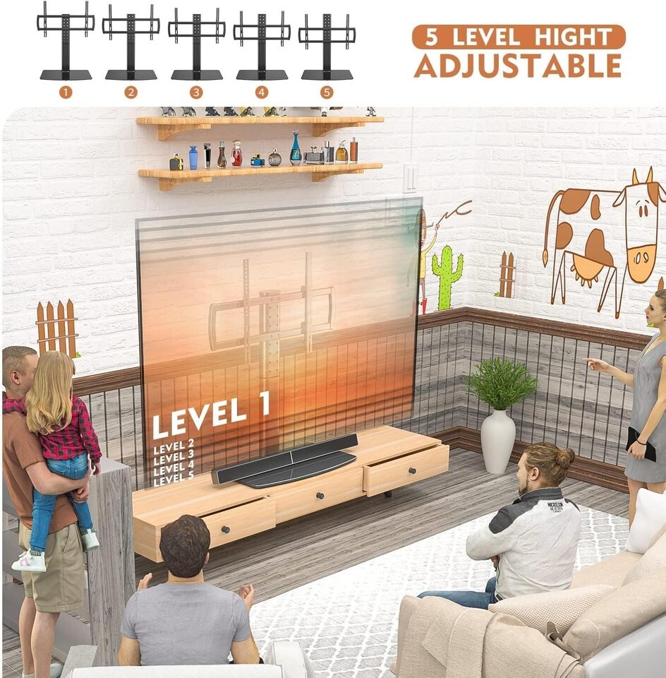 FUNCTIONAL TV STAND WITH HEIGHT ADJUSTABLE AND CABLE MANAGEMENT ? My functional TV mount have 5 level height adjustment in order to choose your best space, besides integrated cable pass through port and collect the messy cables allows you to tidy your room clean