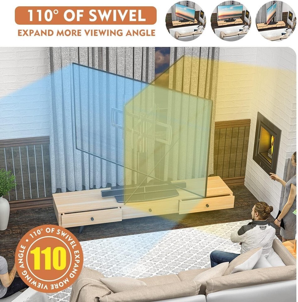 ADJUSTABLE TV HOLDER STAND ? Expand the viewing angles in your space by swiveling the TV left maximum 55 degree and right maximum 55 degree to adjust the height at which the TV sits. No matter what seat you?re in you?ll have the best angle to catch all the pictures