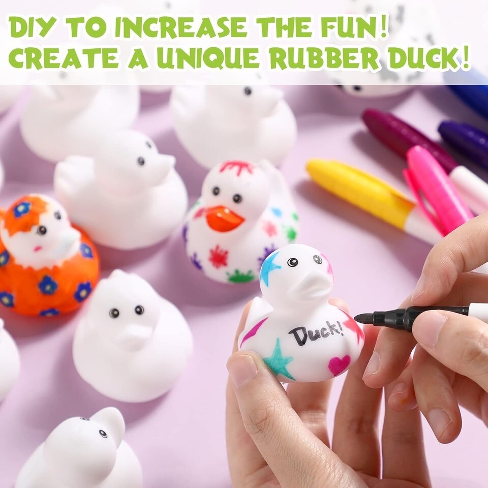 Meet Your Requirements: you will receive 120 white blank duck decorations and 60 colored pens; Color pens include 12 colors, yellow, red, purple, green, blue, black, orange, brown, dark green, dark blue, rose red, pink, can meet your different needs of use