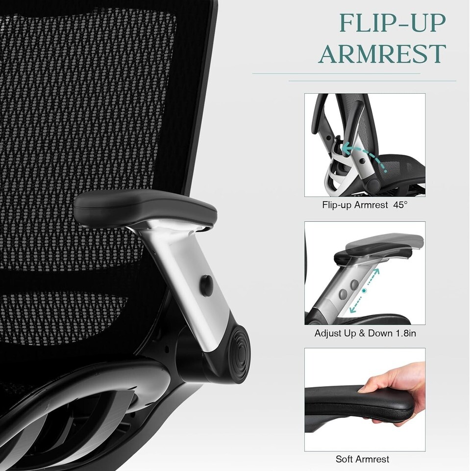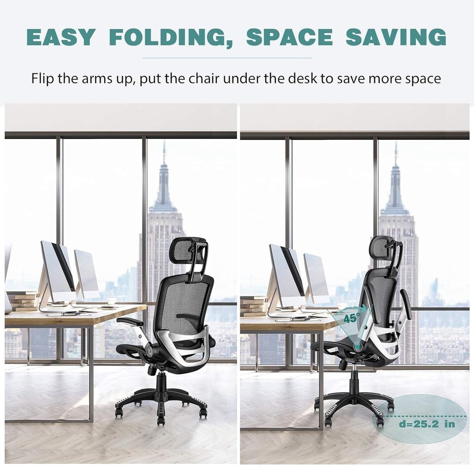 Ergonomic Mesh , High Back Desk Chair - Adjustable Headrest with Flip-Up Arms...