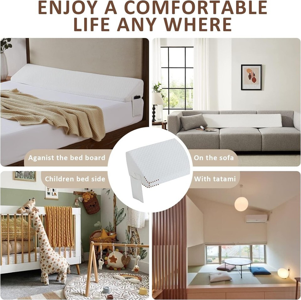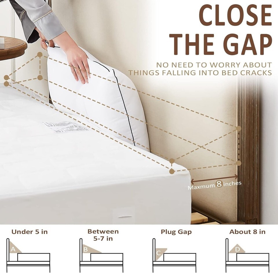 ?Perfect Bed Gap Filler? Our triangle pillow measures 6"*10" and offers 4 length sizes of bed wedge mattress suitable for a wide range of bed sizes. This triangle wedge cushion can fill a gap from 0 to 8 inches, and can perfectly fill the gap between the headboard or wall and mattress to prevent pillows, toys, remote controls and other items from falling out of the bed.