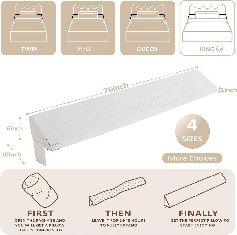 King Size?76"x10"x6") Bed Wedge Pillow for Headboard - Bed Gap Filler0-8" - Triangle Bloster Pillow Wedge White