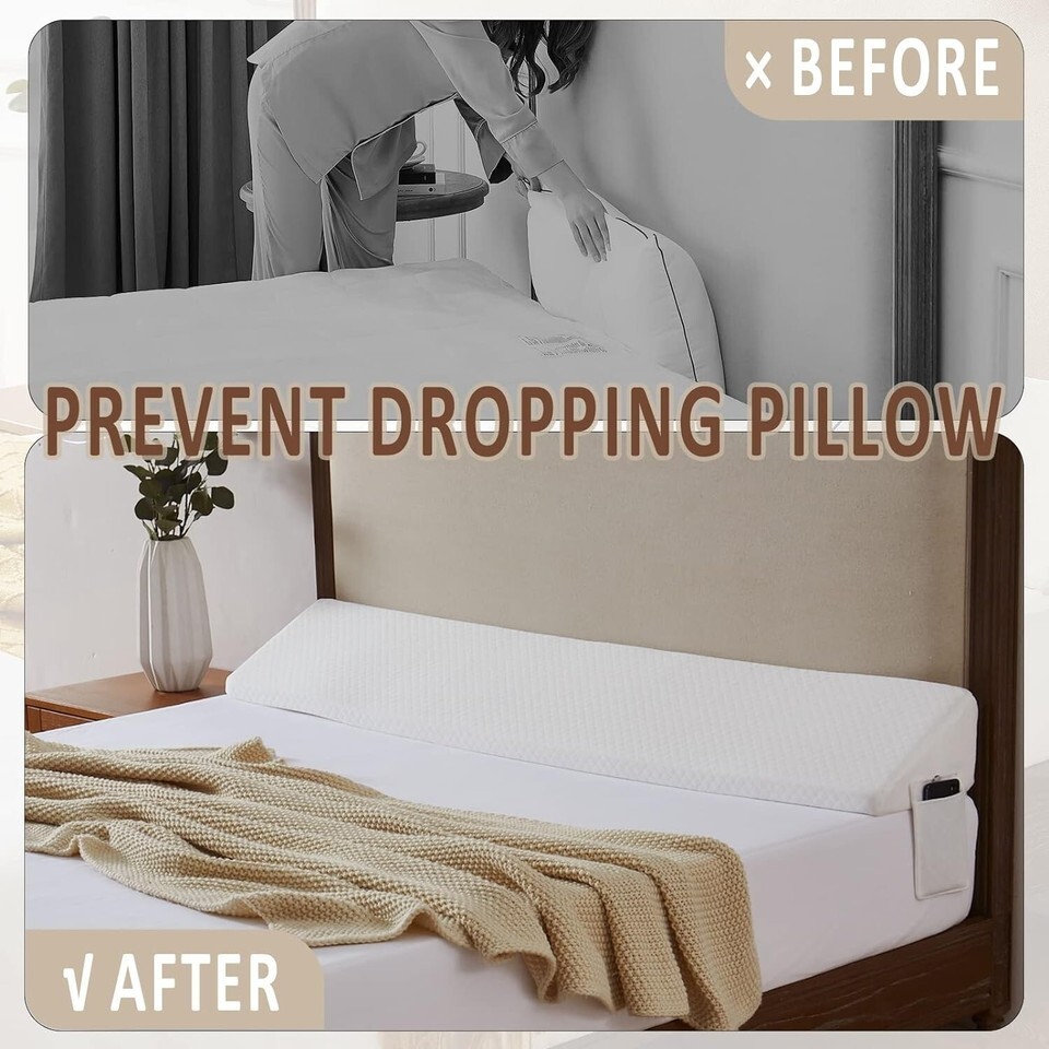 ?Multi-Purpose Use?Our bed wedge pillow for headboard can not only be used as a bed gap filler, but also can be used with ordinary pillows to elevate your head and release the pressure on your shoulders and neck when sleeping on your side and back. You can also use it for sofa pillow filler, while it can be used as back support pillow. In addition our triangular pillow can also be used for arch support pillow, foot elevated pilow.