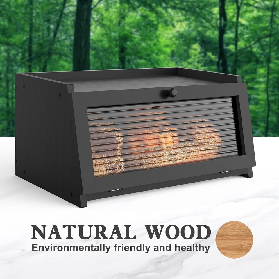 Wooden Bread Box: Crafted from premium wood, this bread box is sturdy, with a natural aesthetic and exceptional quality. Made from eco-friendly wood materials, it is non-toxic and safe, ensuring the safety and health of your food.