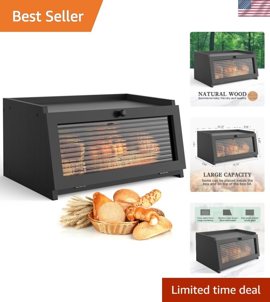 Bread Box for Kitchen Countertop Large Bread Box Farmhouse Bread Container Bread Storage with Window Bread Holder Black